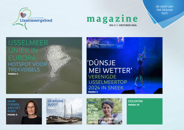 In deze oktober-editie van het online magazine blikken we terug op de Verenigde IJsselmeertop die plaatsvond op 12 september. Duiken we samen met Frans Kwantes, de eigenaar van Koftjalk de Schuttevaer, in het verleden van de bruine vloot. En bekijken het IJsselmeergebied van bovenaf samen met vogelexpert Mennobart van Eerden.