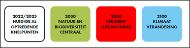 Naast toepassing in het IJsselmeerkompas biedt dit product een analyse die breder ingezet kan worden binnen de IJsselmeergemeenschap.Het doel van de Beeldende en Concrete Weergaven is om duidelijk leesbaar de water en ruimtelijke opgaven op een kaart te hebben. Vanwege de complexiteit is gekozen om de opgaven in vier tijdshorizonten weer te geven.
